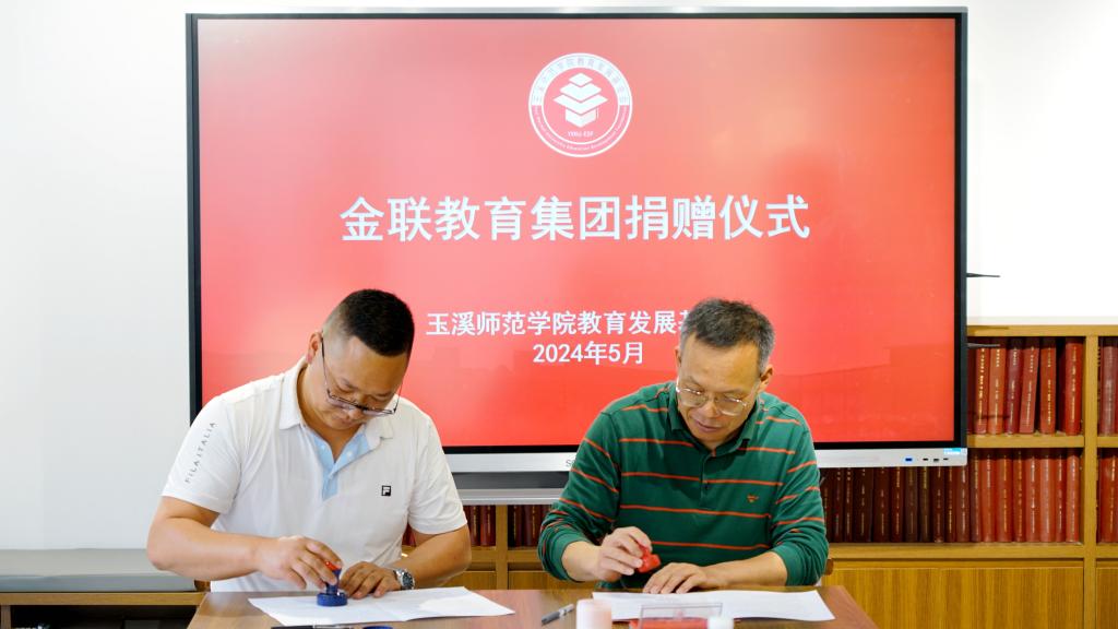 5月7日下午,金联教育集团捐赠签约仪式在玉溪师范学院文学院一楼阅览室举行。