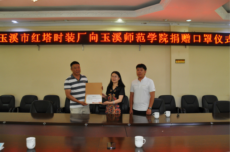暖心聚力,携手抗疫。6月4日,云南省玉溪市红塔时装厂向学校基金会一次性捐赠口罩20000个,助力学校疫情防控和学生返校复学工作。捐赠仪式在一办一楼会议室举行。